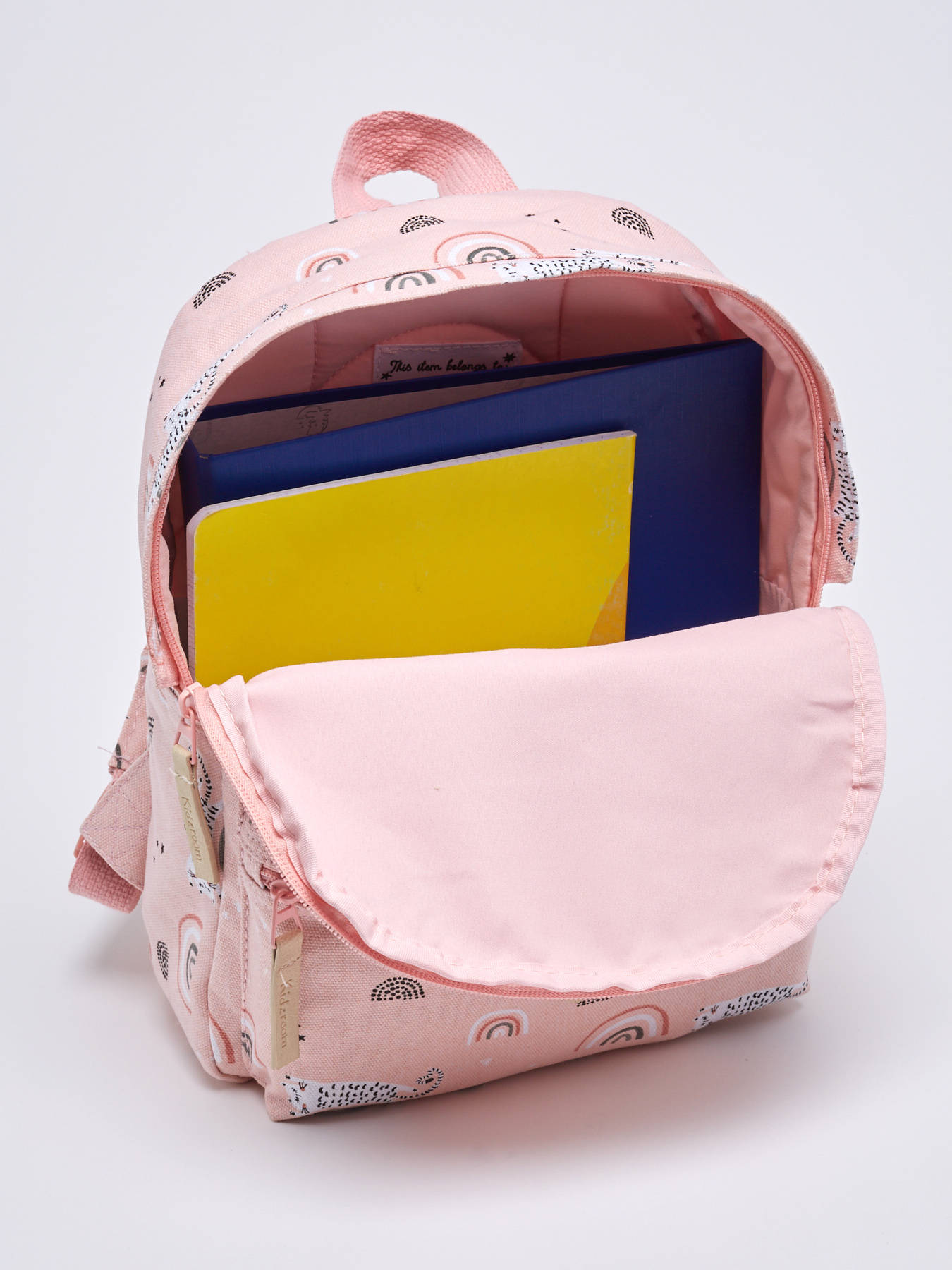 30 cm - 4 litres - 0.22 kg ~ Impossible de ne pas fondre devant ce sac à dos Kidzroom réalisé à partir d'un mélange de coton et décoré d'arcs-en-ciel et de félins. Pour accompagner votre enfant lors de sa rentrée en maternelle, ce sac à dos 30 cm est idéal. A l'intérieur du compartiment principal zippé, votre enfant pourra ranger un petit cahier 17 x 22 cm et un doudou. Son petit goûter pourra se glisser dans la poche éclair qui se trouve sur l'avant du sac. En plus d'être mignon et pratique, ce sac à dos Kidzroom est agréable à porter grâce à son dos renforcé et ses bretelles réglables.