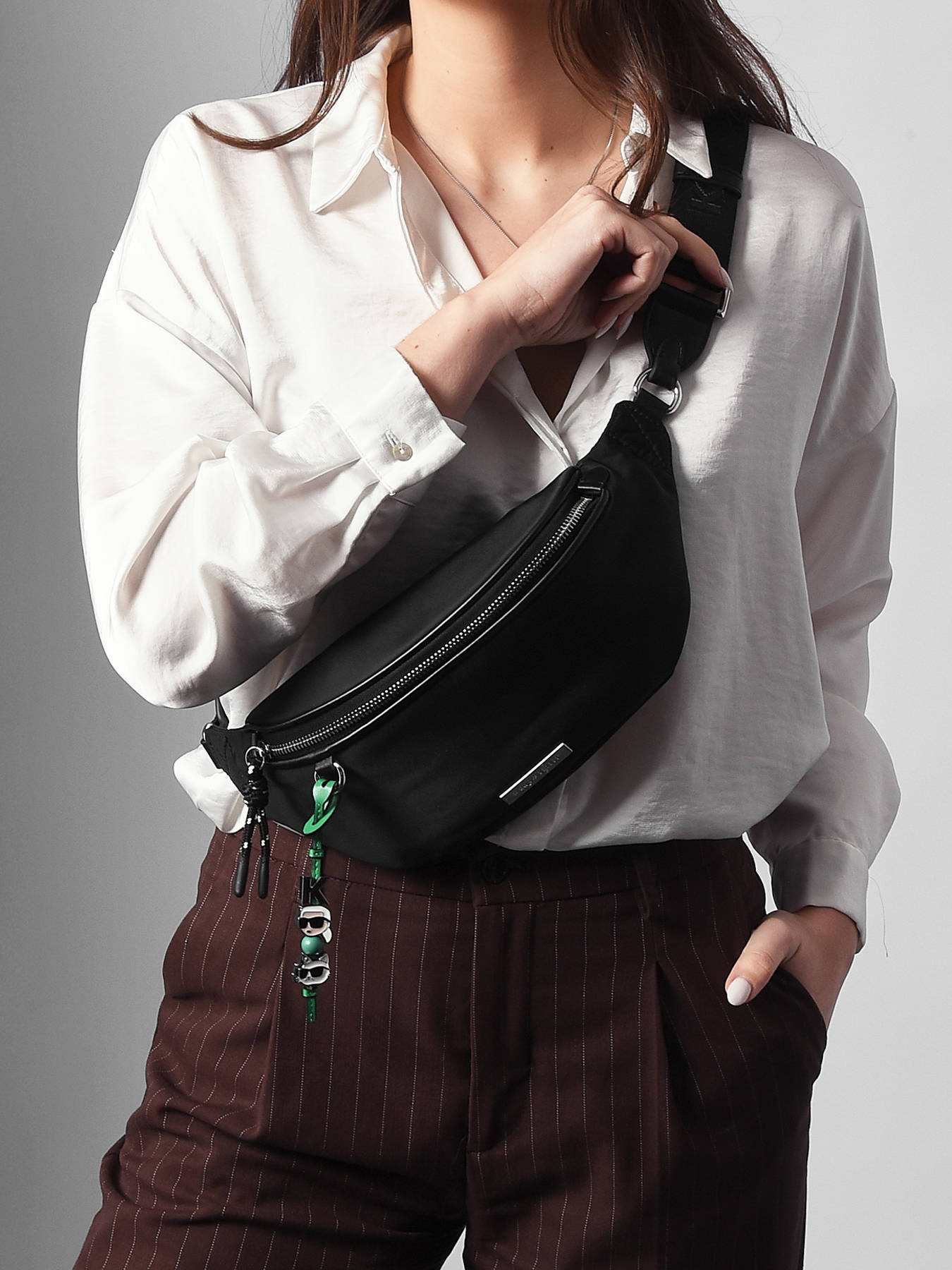 Le sac banane K IKON KARL LAGERFELD, conçu en polyester recyclé, allie modernité et engagement écoresponsable. Sa fermeture zippée garantit une sécurité optimale pour vos effets personnels, tandis que sa bandoulière réglable permet un porté confortable à la poitrine ou en bandoulière selon vos envies. Compact mais fonctionnel, il offre un compartiment principal spacieux accompagné d’une poche intérieure zippée, idéale pour organiser vos petits objets du quotidien. Léger et pratique, ce sac banane s’adapte parfaitement à un style urbain et dynamique, incarnant l’esprit audacieux et contemporain de KARL LAGERFELD. Parfait pour garder l’essentiel à portée de main tout en restant tendance, il sera l’allié idéal de vos déplacements.