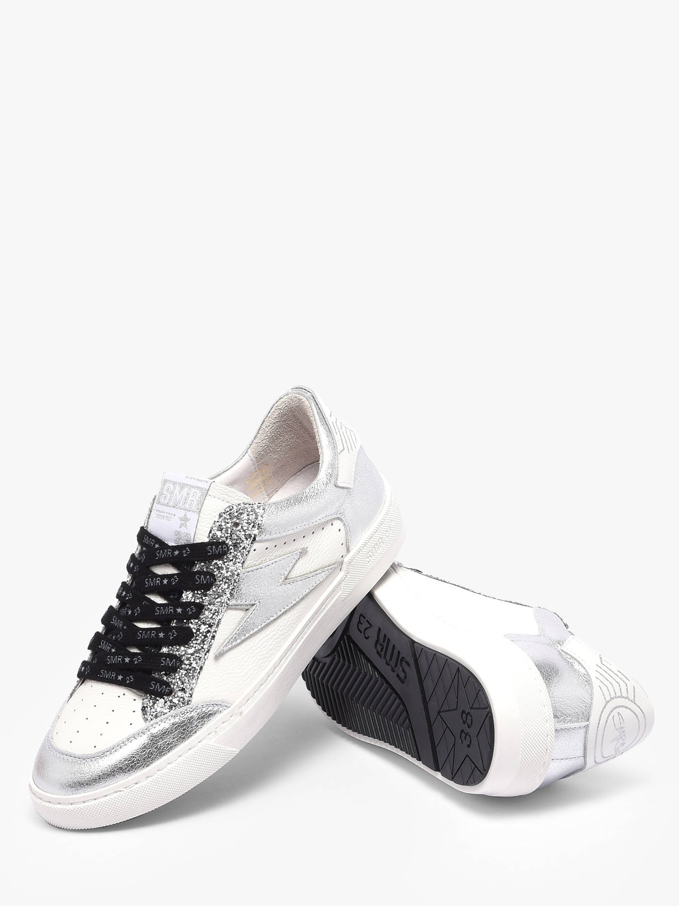 Les baskets Noubar de Semerdjian allient modernité, luminosité et style urbain pour un look chic au quotidien. Leur base en cuir blanc de qualité assure confort et durabilité, tandis que les nombreux détails en cuir métallisé argent apportent éclat et caractère à chaque pas. Les lacets noirs avec inscriptions SMR 23 ajoutent une touche distinctive et contemporaine qui fait ressortir l’identité unique de ce modèle. Polyvalentes et stylées, ces sneakers se portent facilement en ville ou lors de vos sorties, offrant confort, maintien et un design raffiné qui attire les regards. Les Noubar incarnent parfaitement l’alliance entre modernité et sophistication Semerdjian.